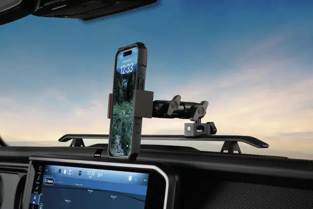 Dashboard-mounted accessories allow for easy access to electronic devices. Always securely fasten brackets and devices for safe use.